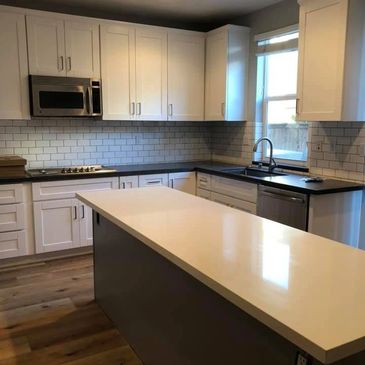 We, home owners, had a massive flood and called her for a paint consult. After we met for the paint consult, she said: ”call me if you have ANY questions.” We were going to try to hire our own contractors for painters and flooring. We soon realized this job would be too big to handle on our own. We then followed up with Lindsey and asked her if she would be willing to oversee the project. We had a meeting prior to the construction beginning in this big project. We had flooring replaced throughout out house, our house repainted, updated our kitchen cabinets with a new paint color, replaced the hardware, and decor throughout our house, new lighting, wainscoting, and wood beams, floating shelving. Lindsey was the lead women in charge and over saw the work of the contractors.